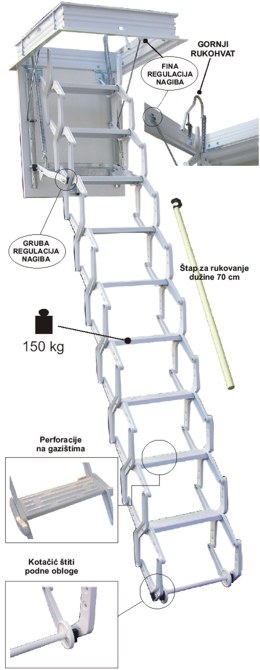 Bočni teleskopski rukohvat za metalne tavanske ljestve |